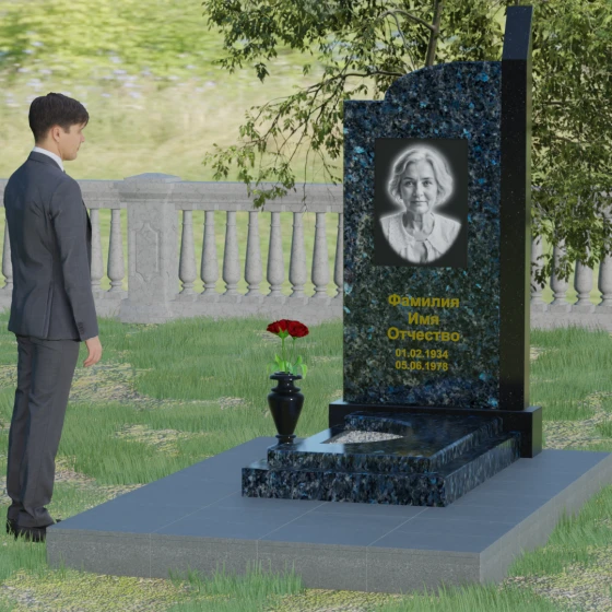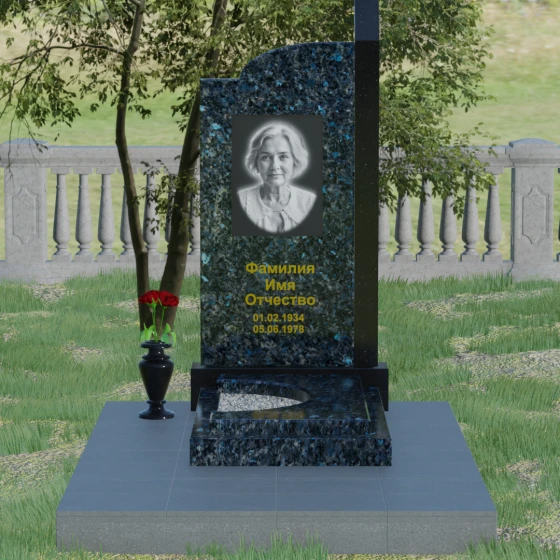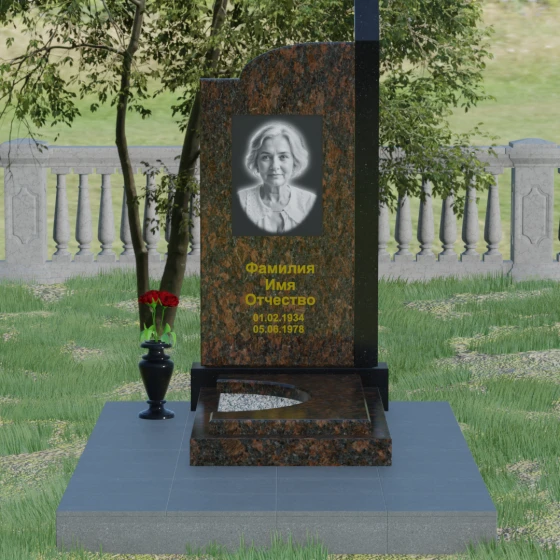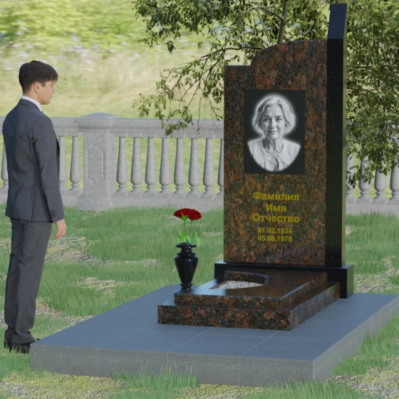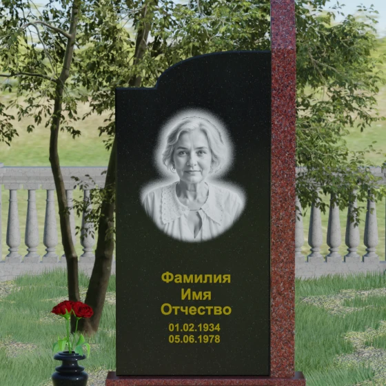 Широкое полотно основной стелы открывает безграничные возможности для художественного оформления. Форма идеально подходит для размещения крупного портрета в технике гравировки с мягкой растушевкой («ореолом»), что создает эффект живого взгляда. Золоченая кириллица имен и дат особенно выразительно смотрится на темном фоне, придавая мемориалу статусность и торжественность. Для того чтобы отразить индивидуальность и характер ушедшего человека, данная модель доступна в 8 цветовых решениях. Вы можете выбрать классический черный гранит Габбро-диабаз, благородный серо-белый Мансуровский гранит, насыщенный красный Лезниковский или глубокий коричневый Дымовский. Также доступны экзотические варианты: лесной Балтик грин, искрящийся Блю Перл, контрастный амфиболит или сияющий белизной мрамор Тассо. Комбинирование двух видов камня позволяет создать уникальный контраст фактур и оттенков, подчеркивая архитектурную сложность изделия.