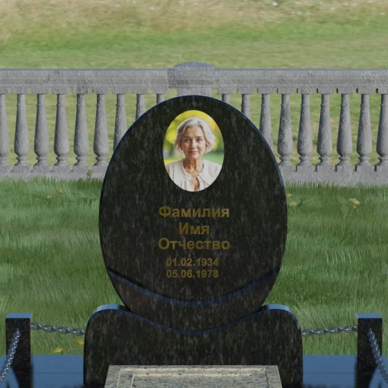 Данное ритуальное изделие притягивает взгляд своей совершенной гармонией и мягкостью линий. В основе композиции лежит безупречный овал — символ вечности, завершенности и бесконечного круговорота жизни. В отличие от строгих прямоугольных форм, эта стела выглядит более одухотворенно и спокойно, привнося на место захоронения атмосферу умиротворения. Особое внимание заслуживает художественная обработка основания: овальная плита плавно переходит в изящную подставку с мягкими «плечами» или волнообразными изгибами, которые создают надежную опору для всей конструкции. Каждая грань камня проходит многоступенчатую ручную и станочную обработку, что позволяет добиться идеальной гладкости. Отсутствие острых углов делает надгробие визуально легким, несмотря на значительный вес натурального камня.