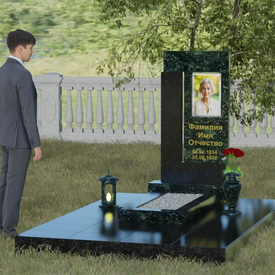 Архитектурное решение стелы предусматривает выделенную зону для портрета, которая может быть оформлена как в виде классической фотокерамики в овальной нише, так и методом художественной лазерной гравировки. Золоченая или вырубленная в камне надпись располагается на контрастном фоне, что обеспечивает отличную читаемость даже на расстоянии. Мы предлагаем этот проект в 8 уникальных цветовых исполнениях, что позволяет наделить мемориал индивидуальным характером. Вы можете выбрать глубокий черный гранит Габбро-диабаз, благородный серо-белый Мансуровский гранит, насыщенный красный Лезниковский, строгий Дымовский, изысканный Блю Перл с его синими искрами, текстурный Амфиболит, зеленый Балтик Грин или белоснежный мрамор Тассо.
