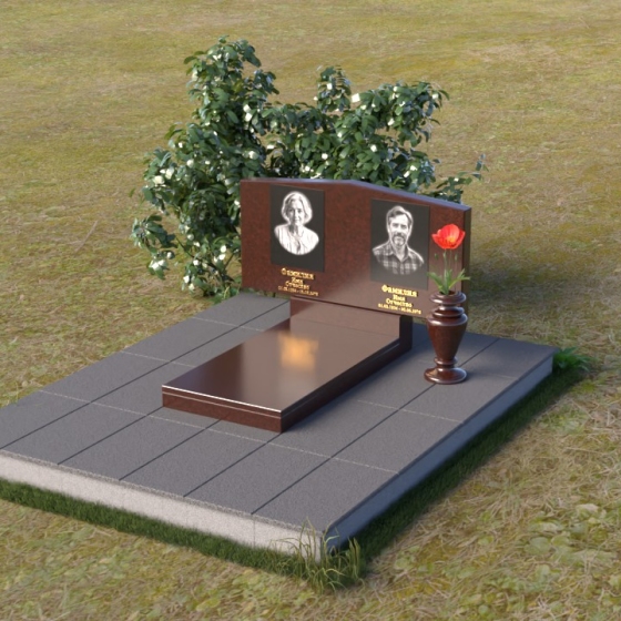Форма этого памятника символизирует покой и защиту. Прямые линии и четкие грани говорят о стабильности и надежности, а скошенные углы смягчают строгость и добавляют нотку современности. Общая композиция создает ощущение умиротворения и вечности, напоминая о том, что память о близких будет жить в наших сердцах всегда.