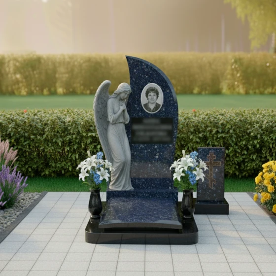 Этот мемориальный комплекс излучает тихую скорбь и надежду на небесное заступничество. Изогнутая форма стелы, словно крыло ангела, устремляется ввысь, символизируя вознесение души. Модель доступна в восьми вариантах исполнения - от строгого черного гранита до светлого мрамора Тассос - позволяя создать мемориал, наиболее точно отражающий личность усопшего и чувства близких.