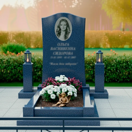 Мы предлагаем эту модель в 8 уникальных цветовых решениях, что позволяет подобрать мемориал, идеально соответствующий характеру и индивидуальности ушедшего. В нашем ассортименте представлены 7 видов гранита: благородный амфиболит с его глубокими темными оттенками, насыщенный Балтик грин, сияющий Блю Перл с его перламутровыми вкраплениями, классический Габбро-диабаз, теплый Дымовский, величественный Лезниковский и светлый Мансуровский. Для тех, кто предпочитает более мягкие и светлые тона, доступен изысканный мрамор Тассо. Такое разнообразие материалов позволяет создать по-настоящему уникальный и персонализированный мемориальный комплекс, который станет достойным символом вечной памяти.